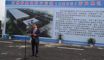 帝奧電梯總經(jīng)理薄建林作帝奧電梯工業(yè)園(二期工程)開工典禮項目介紹。